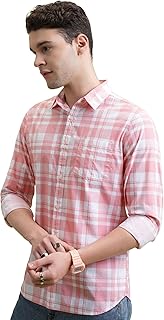 Men's Cotton Regular Fit Checkered Full Sleeves Cutaway Collar Casual Shirt